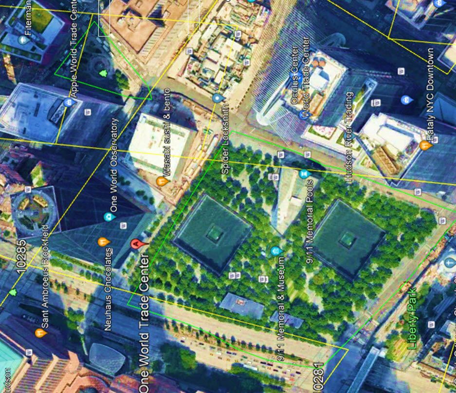 The current memorial pools although 1/3 smaller hold to the same, where the ones now represent the former. As an aside to a former work I had completed on the same subject years ago, for a government official that consisted of only the towers themselves, here the entire complex was developed toward confirming accuracy of the former work.